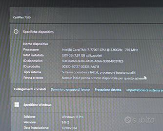 PC praticamente mai utilizzato Non ha un graffio Windows 11 Pro già installato Intel Core i7 7700T 8GB RAM Pronto al uso