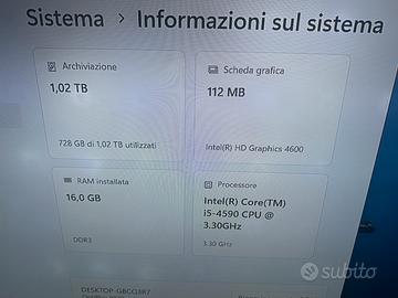 Dell optiplex 9020 i5 quad 3300 x4 4 threads piu turbo boost 3700 mhz massimo ssd256gb hard disk500gb meccanico 16 gb ram ddr3 1600 mhz dual channel un ottimo pc windows 11 originale velocissimo socket 1150 €100