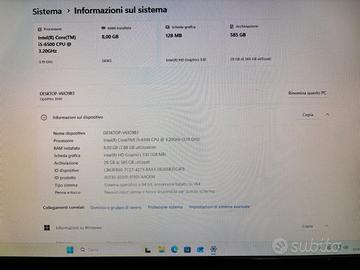 PC Desktop Dell Optiplex 3040 MicroTower con processore i5 di sesta generazione Intel. Completamente revisionato, in ottime estetiche e con Windows 11 Pro installato, attivato e aggiornato alla 25H2. Pronto all'uso. ⚙️ Caratteristiche principali - Processore: Intel Core i5-6500 (3.2 GHz, 4 core / 4 thread, 3.6GHz turbo) - Memoria RAM: 8GB DDR3L SK Hynix (espandibile fino a 16GB) - SSD 128GB SanDisk - HDD 500GB Western Digital - Grafica: Intel HD 530 - Uscite video: 1x HDMI + 1x DisplayPort + 1x VGA → supporto doppio monitor - Alimentatore da 240W: possibilità di installare scheda video dedicata per utilizzi da gaming leggero - Windows 11 Professional attivo e aggiornato a 25H2. 🔧 Ricondizionamento - Pulizia interna approfondita - Sostituzione pasta termica ❄️ - Sostituzione batteria BIOS 🔋 - Testato approfonditamente con Prime95 e MemTest ✅ Usi consigliati - Navigazione internet e programmi di tutti i giorni - Studio e didattica - Lavoro da casa / ufficio - Grafica 2D - Sviluppo web - Streaming/MediaCenter (YouTube, Netflix, ecc.) - Server domestico (NAS, homelab, piccoli servizi locali) - Gaming leggero con scheda video dedicata Su richiesta è possibile installare un SSD e/o un HDD più grande. Disponibile a scambio a mano su Roma o spedizione con Tuttosubito