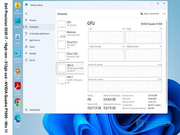Scheda video dedicata NVIDIA Quadro P1000 da 4Gb "con prestazioni condivise fino a 11,9Gb"