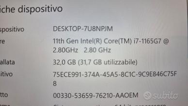CPU i7 1165 G7 @2,8GHz 32 GB di Ram Schermo touch da 13” 2-in-1 (convertibile) SSD 1 TB 1,2 kg Leggero e potente, con accessori e scatola originale, praticamente mai usato e pronto a qualsiasi prova..