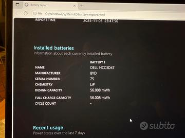 La batteria è stata appena sostituita con una originale Dell, installata da tecnico a novembre 2025 e coperta da 1 anno di garanzia ufficiale DELL. Alimentatore originale Dell da 130W incluso.