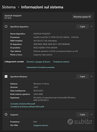 đŸ”„ Computer Dell XPS 8940 – Prestazioni da urlo, condizioni pari al nuovo! đŸ”„ ✅ Caratteristiche principali: â–ș Processore: Intel Core i7‑10700 (8core/16thread, 2.9–4.8GHz), potenza multi-tasking per lavoro professionale, gaming e contenuti â–ș RAM: 16GB DDR4 (3200MHz, dual‑channel), espandibile fino a 128GB â–ș Storage: SSD NVMe da 1TB + SSD da 500GB — avvio lampo, zero attese â–ș Scheda grafica: NVIDIA GeForce RTX 3060 Ti (8GB GDDR6): eccellente per gaming 1080p/1440p, editing video e rendering â–ș Scheda madre con chipset H470 + supporto PCIe 3.0 e Wi‑Fi6/Bluetooth 5.1 â–ș Porte & connettivitĂ : USB‑C, HDMI2.1, DisplayPort1.4, lettore SD, Ethernet, audio surround – ampie opzioni di collegamento 🎯 PerchĂ© comprarlo: â–ș Condizioni pari al nuovo, usato pochissimo, nessun graffio, nessun problema. â–ș Prestazioni top di gamma per video editing, fotografia, gaming competitivo, CAD e virtualizzazione. â–ș Espandibile: 4 slot RAM, due SSD aggiuntivi possibili, PSU da 500W se volessi scegliere GPU piĂč potente. â–ș Consumi ragionevoli con raffreddamento adeguato: ventole silenziose, impianto termico studiato per un uso intenso. â–ș Esteticamente elegante, chassis "Night Sky", compatto ma dotato di ogni connettore utile. 🎁 Cosa include: â–ș Desktop Dell XPS 8940 con sistema Windows 11 â–ș Dissipatore stock e alimentatore da 500W â–ș Tastiera e mouse USB â–ș Cavi, manuali e imballo originali. ✅ Chi Ăš perfetto per questo PC? â–ș Appassionati di gaming 1080p/1440p con framerate elevati â–ș Creativi professionisti: editing video/foto, CAD, rendering 3D â–ș Utenti evoluti che vogliono un desktop versatile e espandibile nel tempo 📌 Contattami per foto dettagliate, informazioni o per sentirne il suono delle ventole in funzione. Questo XPS 8940 ti sorprenderĂ  — prestazioni da nuova generazione, prezzo da occasione!