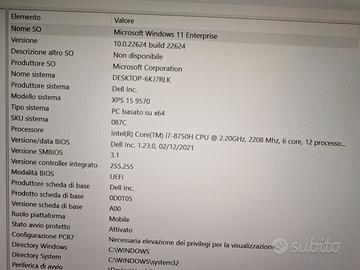 Vendo stupendo notebook Dell XPS 9570 con display da 15,6 pollici.