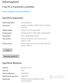 Vendo fantastico Dell Xps 9570, privo di difetti estetici e hardware.