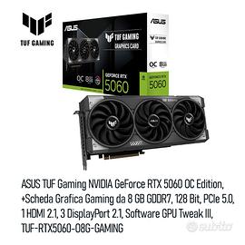 Desktop WKS PRO ASUS TUF Ai Gaming, Cpu AMD CPU RYZEN 7 9800X3D, 5.2 GHZ 8-CORE, WOF, M\B ASUS TUF GAMING B650M WIFI, SVGA GEFORCE TUF-RTX5060- 8 Gb GDDR7, Ram 32Gb DDR5, SSD Nvme PCi 2 Tb, dissipatore ASUS TUF 360 ARGB, Win 11Pro