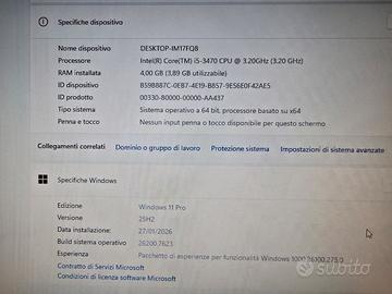 vendo pc dell 7010 con processore i5 -ram 6 gb (non 4 come in foto )-disco ssd WD 120 gb , porte VGA e DisplayPort, porte usb 3.0 e 2.0 , sistema operativo windows 11 Pro appena reinstallato , condizioni eccellenti , consegna a mano anche per provarlo con calma a mio domicilio o consegna gratuita nel raggio di 10km -suggerisco di leggere le mie recensioni