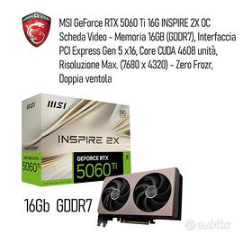 MSI GeForce RTX 5060 Ti 16G INSPIRE 2X OC Scheda Video - Memoria 16GB (GDDR7), Interfaccia PCI Express Gen 5 x16, Core CUDA 4608 unità, Risoluzione Max. (7680 x 4320) - Zero Frozr, Doppia ventola