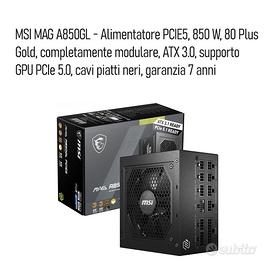ALIMENTATORE MSI MAG A850GL - Alimentatore PCIE5, 850 W, 80 Plus Gold, completamente modulare, ATX 3.0, supporto GPU PCIe 5.0, cavi piatti neri, garanzia 7 anni