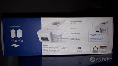 DEVOLO POWERLINE dLAN 550 duo+ Starter Kit ART. 09303. Ancora sigillato nuovo. Contenuto 2 elementi + cavi. 2 Porte x ogni elemento. No WiFi. Compatibile con tutti gli adattatori della gamma di prodotti da 200/500/550/650/1200. Consegna gratis a Milano citta'.