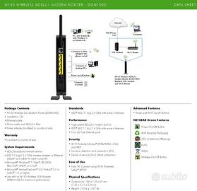 Modem Router ADSL Netgear DGN1000 wireless N150, usato, perfettamente funzionante, 4 porte ethernet + wifi, completo di alimentatore.