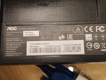 monitor completo di cavo VGA e di rete 220volt. Con piedistallo, ben tenuto.