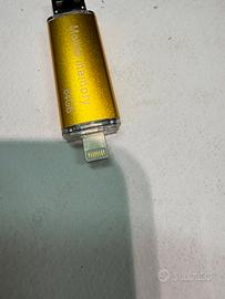 Questo è un dispositivo di archiviazione flash USB "i-FlashDevice" 3 in 1. Utilizza la memoria flash per l'archiviazione dei dati. Compatibile con dispositivi iOS, Android, MAC e PC. Disponibile in capacità da 8GB a 128GB. Presenta connettori USB e Lightning. Progettato per funzioni quali backup, album, musica e film.