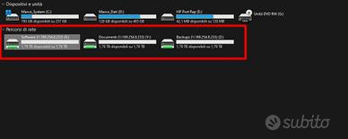 Le foto mostrano l'interfaccia web e le cartelle create, gestite direttamente e separatamente da Windows come unità interne.