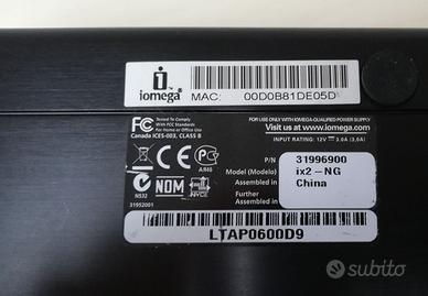 Dispositivo compatto NAS per storage, mod. Iomega StorCenter ix2, composto da 2 unità rimuovibili.