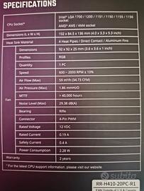Dissipatore per cpu cooler master hyper h410 rgb, nuovo (mai aperto, causa acquisto errato).