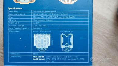 Dissipatore CPU cooler master adattabile ad alcuni processori AMD/Intel, per la compatibilità visionare foto. Ovviamente necessita di nuova pasta termica.