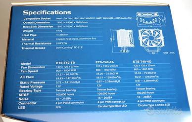 Dissipatore Enermax ETS-T40-TB con alette in alluminio, heat pipes in rame e ventola standard da 120x120 millimetri