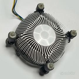 Vendo dissipatore Intel stock per CPU, completo di ventola, il prodotto è in ottime condizioni, perfettamente funzionante e già pulito accuratamente, pronto per essere installato con nuova pasta termica