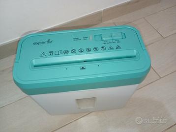 Vendo EXPERTIZ Distruggidocumenti, blu/bianco, in eccellenti condizioni complessive, mai usato, di seguito specificato: distruzione sicura ed efficiente di documenti sensibili (anche con punti metallici) e carte di credito. Capacità: 4 fogli contemporaneamente. contenitore di raccolta da 8 litri. 4 posizioni: Avanti, Auto, Spento, Indietro.