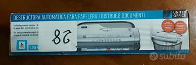 Vendo distruggi documenti a marchio United Office, modello con braccio estraibile. L'articolo è nuovo, perfettamente funzionante e ancora sigillato nella sua confezione originale. Ideale per la casa o l'ufficio.