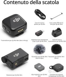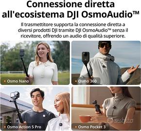 DJI Mic Mini (1 TX + 1 RX),microfono lavalier, leggerissimo, audio di alta qualità, cancellazione del rumore, regolazione automatica, microfono senza fili per fotocamere/iPhone/Android, vlog Piccolo ma potente - Il trasmettitore DJI Mic Mini è piccolo e ultraleggero, con un peso di soli 10 g [1], rendendolo un comodo microfono lavalier da indossare, discreto e esteticamente piacevole in video. Suono ricco e dettagliato - Mic Mini è un microfono wireless che offre un audio di alta qualità. La distanza di trasmissione massima di 400 m [2] garantisce una registrazione stabile, anche in ambienti rumorosi come le strade affollate. Registra più a lungo - Un trasmettitore e un ricevitore offrono rispettivamente un'autonomia operativa fino a 10 ore. [5] È più che sufficiente per un microfono wireless in scenari di uso intensivo come le interviste. Connessione diretta con l’ecosistema DJI – Con DJI OsmoAudio, un trasmettitore può connettersi a Osmo Nano, Osmo 360, Osmo Mobile 7P, Osmo Action 5 Pro, Osmo Action 4 o Osmo Pocket 3 senza l’uso del ricevitore, per un audio di qualità superiore. Cancellazione del rumore efficace - Sono disponibili 2 livelli di cancellazione del rumore: Base è ideale per gli ambienti interni silenziosi, mentre Alto eccelle in ambienti rumorosi per fornire registrazioni vocali chiare con un microfono lavalier. [8] Audio sempre impeccabile - DJI Mic Mini è dotato di una funzione di limitazione automatica per ridurre il volume se l'audio in ingresso è troppo alto, prevenendo il clipping e garantendo una qualità audio affidabile come un ottimo microfono wireless in ogni situazione. Include un trasmettitore DJI Mic Mini, un ricevitore e altri accessori utili, offrendo la flessibilità di un microfono wireless in un'ampia gamma di scenari per la creazione di contenuti. Campionamento a 48 kHz e 120 dB SPL per un audio ricco e senza distorsioni, durata della batteria di circa 10 ore [5].