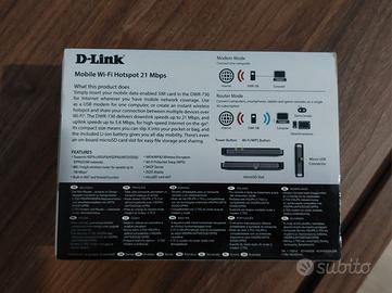 Il mini router DLink DWR 730 consente di connettersi alla rete dati tramite una scheda sim.