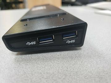 La confezione comprende: CD con manuali e drivers, easy quick guide, cavo di collegamento al NB con connettore USB 3.0 lato NB e proprietario per la DS, alimentatore trasformatore con plug EU, UK, US, AU, adattatore HDMI a DVI I. Supporti removibili per alzata.