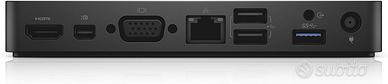 Dell Dock WD15 è una docking station USB-C compatta progettata per collegare laptop e tablet a una postazione fissa con un unico cavo. Caratteristiche e Connettività La dock WD15 espande notevolmente le porte disponibili, permettendo di collegare periferiche, rete e monitor esterni. Porte Video: Dispone di 1x HDMI, 1x mini DisplayPort e 1x VGA. Supporta fino a due display Full HD (1080p) o un singolo display 4K a 30Hz. Porte USB: Include 3 porte USB 3.0 (due frontali, una posteriore) e 2 porte USB 2.0 posteriori. Rete e Audio: È dotata di una porta Gigabit Ethernet (RJ-45), un'uscita cuffie frontale e un'uscita audio posteriore.