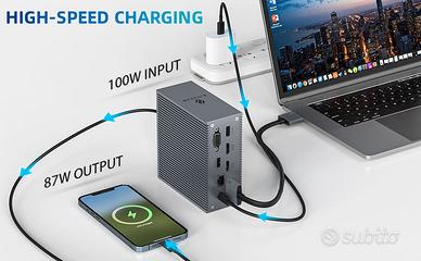 *Il caricabatterie NON è incluso. Normalmente il laptop è già dotato di un alimentatore USB-C, che può collegare la porta PD3.0 per fornire alimentazione alla docking station. Quindi non forniamo un alimentatore aggiuntivo.