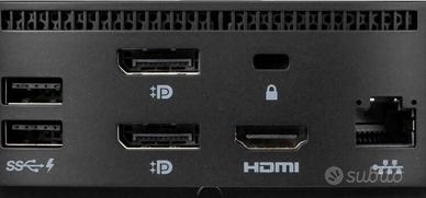 Vendo docking station HP USB-C G5 100W, modello 5TW10AA. Nuova mai aperta dalla confezione originale vendo perchéricevuta come doppio regalo. Prezzo da listino Un solo cavo per tutto: Collega il tuo laptop tramite USB-C e caricalo istantaneamente grazie ai 100W di potenza (Power Delivery), mentre gestisci monitor e accessori! Multitasking senza limiti: Supporta fino a 3 monitor esterni contemporaneamente (2x DisplayPort + 1x HDMI) per una visione panoramica del tuo lavoro. Connettività infinita: • 4 porte USB 3.0 per mouse, tastiere e dischi esterni. • 1 porta USB-C frontale per ricarica rapida e dati. • 1 porta Ethernet RJ45 per internet cablato alla massima velocità. • Jack audio combo per cuffie e microfono. Design ultra-compatto: Occupa pochissimo spazio (solo 122x122 mm) e sta bene su ogni scrivania grazie al look minimal ed elegante. Compatibilità: Progettata per HP, ma funziona perfettamente con MacBook, Dell, Lenovo e tutti i laptop dotati di porta USB-C che supportano video e ricarica. Vendo docking station HP USB-C G5 100W, modello 5TW10AA. Nuova mai aperta dalla confezione originale vendo perchéricevuta come doppio regalo. Prezzo da listino Un solo cavo per tutto: Collega il tuo laptop tramite USB-C e caricalo istantaneamente grazie ai 100W di potenza (Power Delivery), mentre gestisci monitor e accessori! Multitasking senza limiti: Supporta fino a 3 monitor esterni contemporaneamente (2x DisplayPort + 1x HDMI) per una visione panoramica del tuo lavoro. Connettività infinita: • 4 porte USB 3.0 per mouse, tastiere e dischi esterni. • 1 porta USB-C frontale per ricarica rapida e dati. • 1 porta Ethernet RJ45 per internet cablato alla massima velocità. • Jack audio combo per cuffie e microfono. Design ultra-compatto: Occupa pochissimo spazio (solo 122x122 mm) e sta bene su ogni scrivania grazie al look minimal ed elegante. Compatibilità: Progettata per HP, ma funziona perfettamente con MacBook, Dell, Lenovo e tutti i laptop dotati di porta USB-