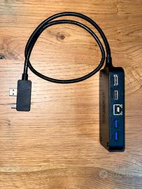Porte disponibili, HDMI (supporta risoluzione 4K), DisplayPort (4K), Porta Ethernet RJ45 (Gigabit 10/100/1000 Mbps) per una connessione internet stabile, 2x USB 3.0 (trasferimento dati fino a 5Gbps), USB 2.0, Jack Audio da 3.5mm (Cuffie/Casse), Ingresso Micro-USB (per alimentazione supplementare se necessario)
