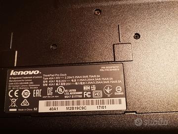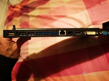 Docking station Lenovo ThinkPad Pro Dock. Consente di collegare facilmente un notebook ThinkPad a periferiche desktop, come monitor esterni, mouse, tastiere e stampanti. Offre molteplici porte di connettività, tra cui USB 3.0, DisplayPort e VGA. Include un alimentatore da 90W per ricaricare il portatile mentre è agganciato. È progettata per trasformare il laptop in una postazione di lavoro desktop completa. Prezzo euro 55
