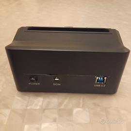 Docking station per hard disk da 3,5 e da 2,5. Collegamento USB 2 e USB 3.0 in dotazione alimentatore originale e cavo USB2
