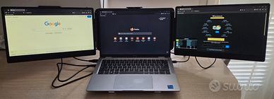 Vendo doppio monitor portatile da 14 pollici in perfette condizioni dotati di speaker , usato perlopiù in modalità singolo schermo (il sinistro) Verrà fornito confezione con tutta la cavetteria ( 2x Cavo type-c type-c, 2x cavo type-c usb-a, 1x cavo type-c HDMI) e borsa per trasportare comodamente il doppio monitor con inserto per i cavi da utilizzare. Lascio il nome del prodotto che potete eventualmente ricercare su Amazon Kwumsy Monitor Portatile Per Laptop 14 Pollici - Ultra Sottile E Leggero Triplo Schermo PC Portatile,FHD 1080P Doppio Schermo Portatile,Compatibile con Laptop13''-17''(Larghezza Max 15,7'')Plug & Play Possibilità di spedizione ma anche volendo consegna a mano Frosinone e provincia Prezzo leggermente trattabile, no affaristi o perditempo