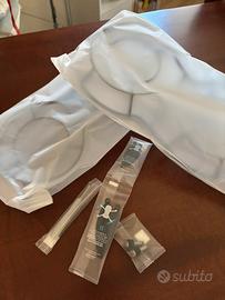Conpleto di borsa, caricabatteria, copri ali e pezzi di ricambio ancora imbustati.
