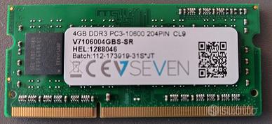 Vendo due moduli di memoria V7 4GB DDR3 PC3-10600 1333MHz SO-DIMM - V7106004GBS-SR