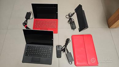 VENDO DUE MICROSOFT SURFACE PRO 3 (2014) Vendo due Microsoft Surface Pro 3, acquistati nel 2014. Entrambi i dispositivi sono in buone condizioni e vengono venduti con un ricco set di accessori inclusi! Caratteristiche dei Dispositivi: 1. Surface Pro 3: Storage: 256 GB Processore: Intel(R) Core(TM) i7-4650U @ 1.70GHz 2.30 GHz RAM: 8,00 GB Extra: Pellicola protettiva in vetro già applicata. 2. Surface Pro 3: Storage: 128 GB Processore: Intel(R) Core(TM) i5-4300U @ 1.90GHz 2.50 GHz RAM: 4,00 GB Extra: Pellicola protettiva in vetro già applicata. Accessori Inclusi nel Kit: 2x Tastiere/Cover Originali: Una di colore Nero e una di colore Rosso. 2x Caricabatterie Originali (uno per dispositivo). 1x Microsoft Arc Mouse (mouse pieghevole, comodo e portatile). 1x Docking Station Originale con caricatore dedicato (trasforma il Surface in un PC fisso). 1x Surface Pen (per prendere appunti e disegnare). 1x Custodia/Cover in finta pelle di colore rosso (per il trasporto). Si accettano anche offerte separate.