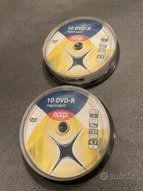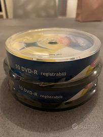 Due confezioni da 10 DVD-R registrabili, ancora sigillati nella confezione originale.