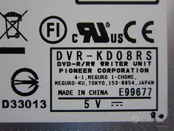 Vendo DVD read/write PIONEER interfaccia P-ATA, 2MB di buffer, per computer portatile di varie marche (controllate la foto con il connettore d'interfaccia). Modello DVR-KD08RS, estratto da portatile ACER. Scrittura: CD-R a 24x CD-RW a 12x DVD/-R a 8x DVD/-R DL a 4x Perfettamente funzionante.