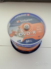 Verbatim DVD-R 4,7 GB 16x vergini full ink wide printable stampabili 120 min. in campana da 50 pezzi.