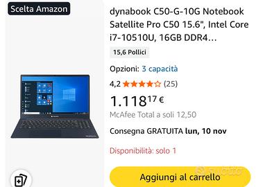 dynabook satellite pro c50-G. In ottime condizioni. Ram 16GB. Core intel i7.