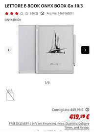 Vendo ONYX BOOX Go 10.3, acquistato 2 mesi fa e utilizzato pochissimo.