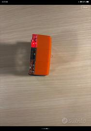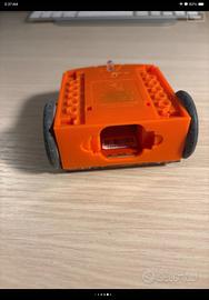piccolo robot capace di seguire linee nere perfettamente funzionante adatto all’apprendimento della programmazione dai 4 ai 16 anni personalizzabile grazie agli attacchi LEGO presenti su dorso e ruote visibili in foto