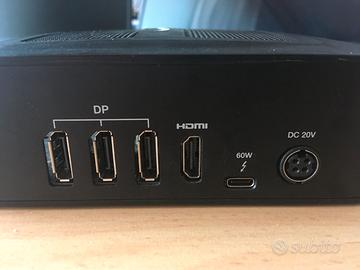 Uscite: 2x DisplayPort, 1x HDMI, 1x USB-C.