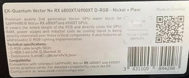 •Compatibilità: AMD Radeon RX 6800XT / RX 6900XT Sapphire Nitro+