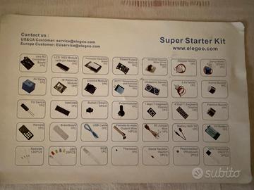 Vendo Elegoo UNO R3 Super Starter Kit, versione completa con sensori, cavi, breadboard e accessori. Si tratta della versione compatibile ed economica di Arduino UNO, ideale per imparare elettronica e programmazione senza spendere troppo.