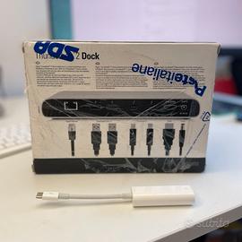 Vendo docking station per mac Elgato Thunderbolt 2 Dock dotata di: - alimentazione esterna - 2 x usb 3 - gigabit ethernet - 2 x thunderbolt / display port - 1 x HDMI - 1 x USB 3 frontale - 1 x Jack cuffie e Jack microfono Assieme alla dock station aggiungo il cavo ufficiale Apple Thunderbolt 2 / Thunderbolt 3 per collegare la dock ai dispositivi con USB C. Condizioni perfette, prezzo trattabile.