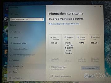 Elitebook 840 g3 m2 nvme picie 128 gb Toshiba poche ore di utilizz più hard disk 500 gb 8gb ram ddr4 cpu i5-6300u tenuto benissomo solo qualche piccolo segno di usura sul coperchio ma non si vedono neanche vedi foto 2 usb3 1 usb tipo c lettore schede micro sd lettore sc poi ce unaltro lettore che non sc cosa sia 14 pollici fhd batteria circa da 4 a 5 ore dipende dall’uso 150€
