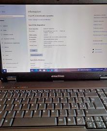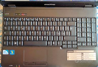 eMachine E728 cpu: INTEL Dual-Core T4500 2,30 GHz ram: 4GB hdd: 250GB (disco maccanico) schermo: 15.6 LED s.o.:WIN10 PRO WIFI-WEBCAM-HDMI-DVD batteria: presente esaurita (da sostituire) alimentatore: con alimentatore condizioni: BUONE,normali segni di usura